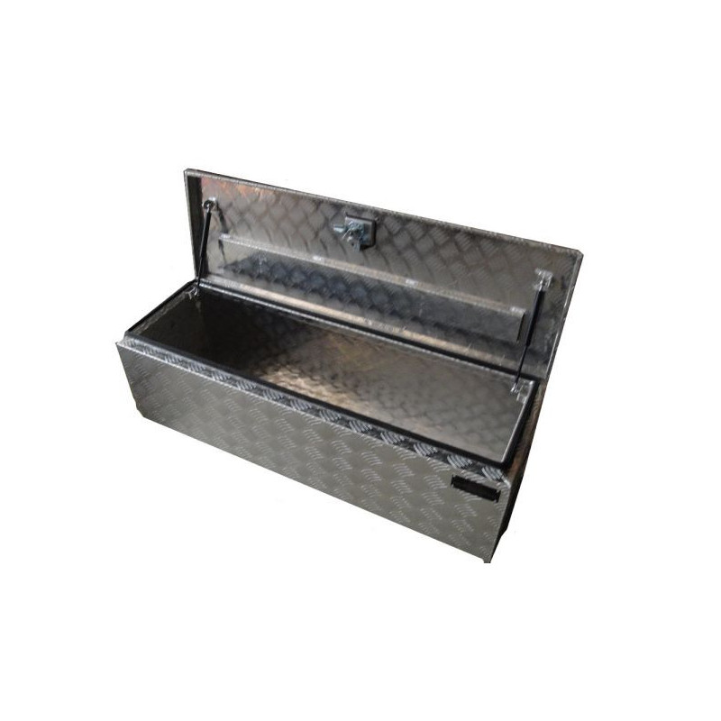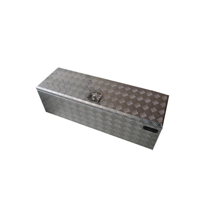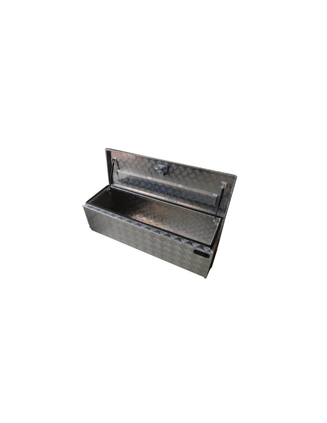 COFFRE aluminium V2Coffre aluminium rectangulaire avec ouverture dessusCaractéristiques :- Joint d'étanchéité- 2 vérins à gaz pour le capot 2 vérins 180 N- Fermeture à clé T-lock ( Réf. 00303 ) avec 2 clés fournies - Renfort de capot en U soudé à l'intérieur - Charnière à piano- Coins biseautés- Matériau : Aluminium strié 1,5 - Poids : 17,5 KgDimensions :- Dimensions passage couvercle : 1130 x 295 mm- Dimensions intérieur utile (L x l x H) : 1227 x 377 x 320 mm - Dimensions extérieures (LxHxP) : 1230 x 380 x 380 mmUsage : Ouverture dessus - benne de camion - à l'arrière d'un pick up - camion nacelle