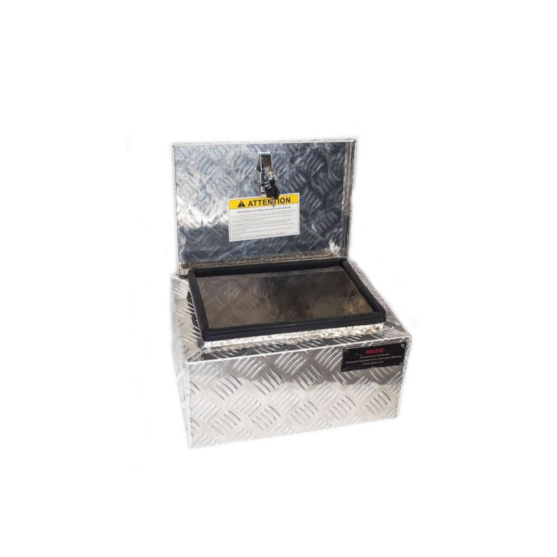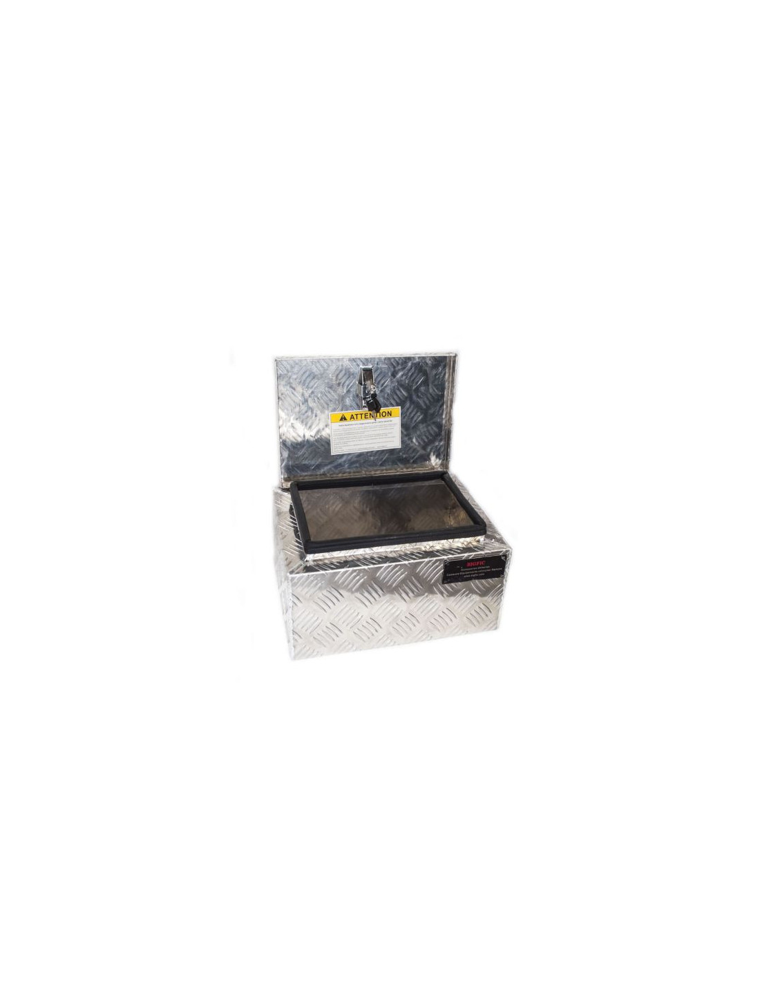 Coffre en aluminium rectangulaire, type sous chassis - Caractéristiques :)- Dimensions extérieures (L x l x H) :400 x 300x 225 mm- Dimensions passage de couvercle : 315 x 210 mm- Dimensions intérieures utiles (L x l x H) : 395 x 295 x 185 mm- Joint d'étanchéité- Fermeture à g chette verrouillable chromée, fournie avec clefs ( Réf.00302 )- Poids : 2,955 Kg- Matériau : aluminium strié 1.5 mm-