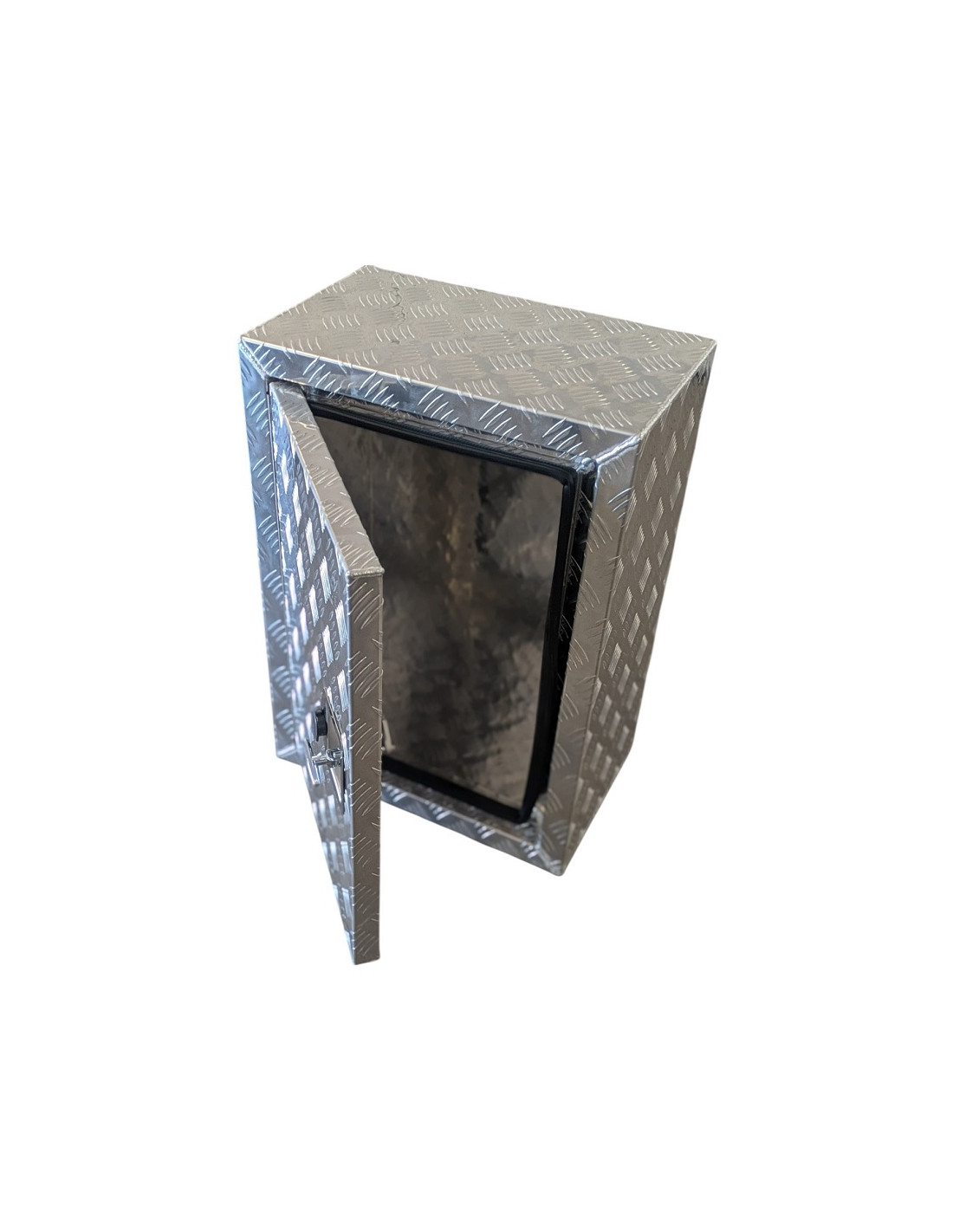 Coffre aluminium 500 x 300 x 700 mm.Ouverture porte de gauche à droite ou de droite à gauche (type armoire).Peut être disposé à l'horizontale avec une ouverture de haut en basCaractéristiques :- Fermeture TLOCK réf. 00303 avec 2 clés fournies- Joint d'étanchéité sur contour ouverture- 1 charnièreInformations techniques :- Dimensions extérieures hors tout (L x P x H) : 500 x 300 x 700 mm- Dimensions passage couvercle (L x l) : 345 x 550 mm- Dimensions intérieures utiles (L x P x H) : 495 x 250 x 695 mm- Matériau : Aluminium strié 1,5 mm