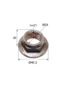 Ecrou de fusée avec embase M24*2 S BPW.Caractéristiques :- Diamètre embase : 46,3 mm- Diamètre intérieur : 24 mm- Hauteur : 21 mm - A/F : 32 mm - Convient aux essieux BPW 1350 kgs S2005-7 Poids : 0,05 kg Port inclus / Participation aux frais d'emballage : 9,99