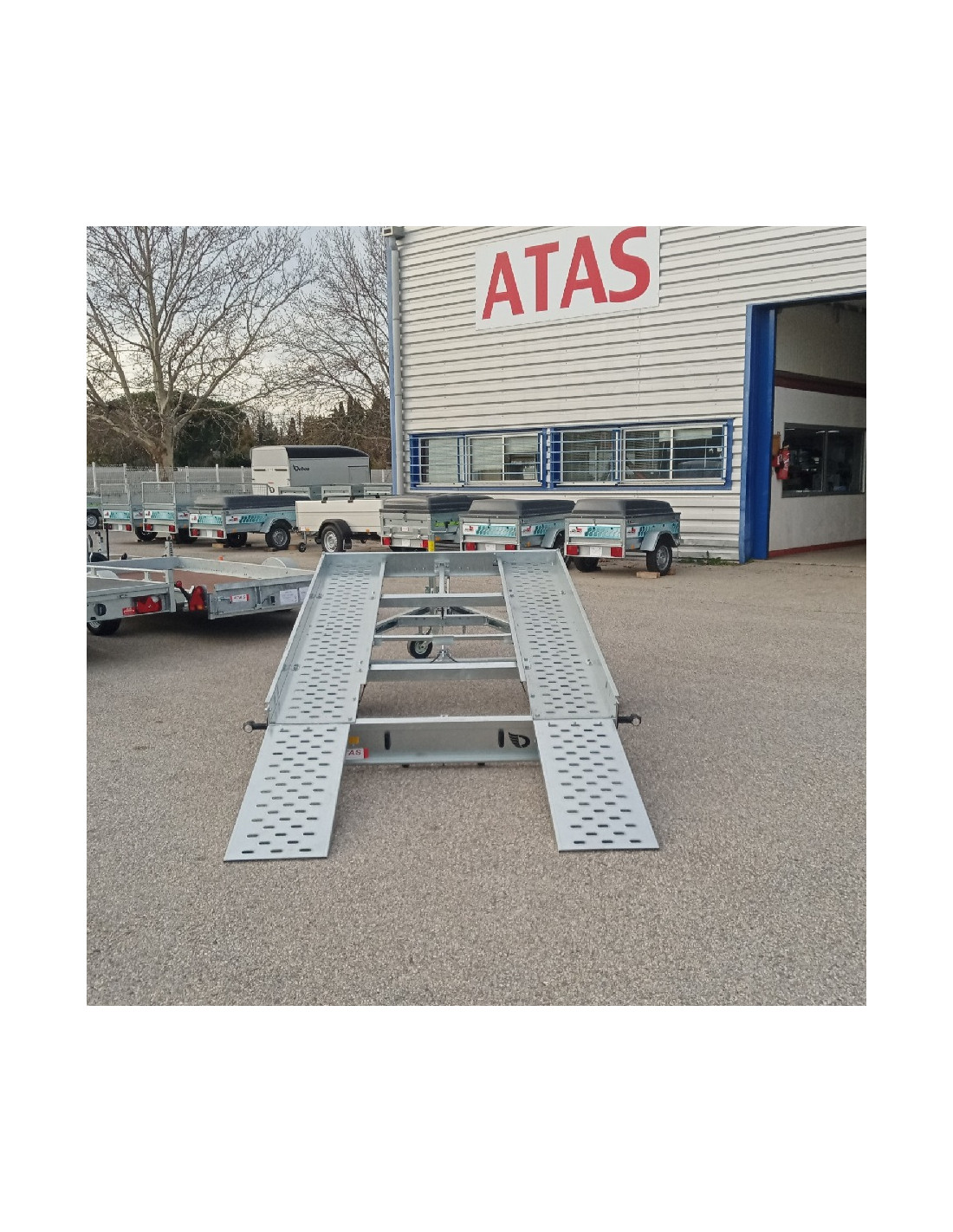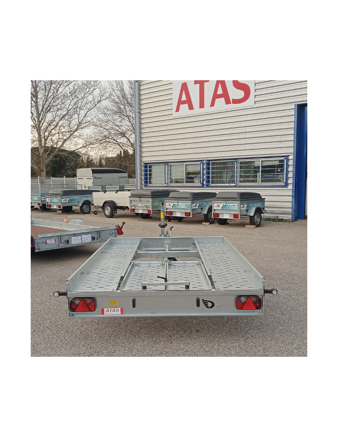 La remorque plateau porte mini voiture est idéale pour transporter en toute sécurité des petits véhicules lors de vos vacances ou voyages en camping-car, offrant une solution pratique pour vos déplacements.