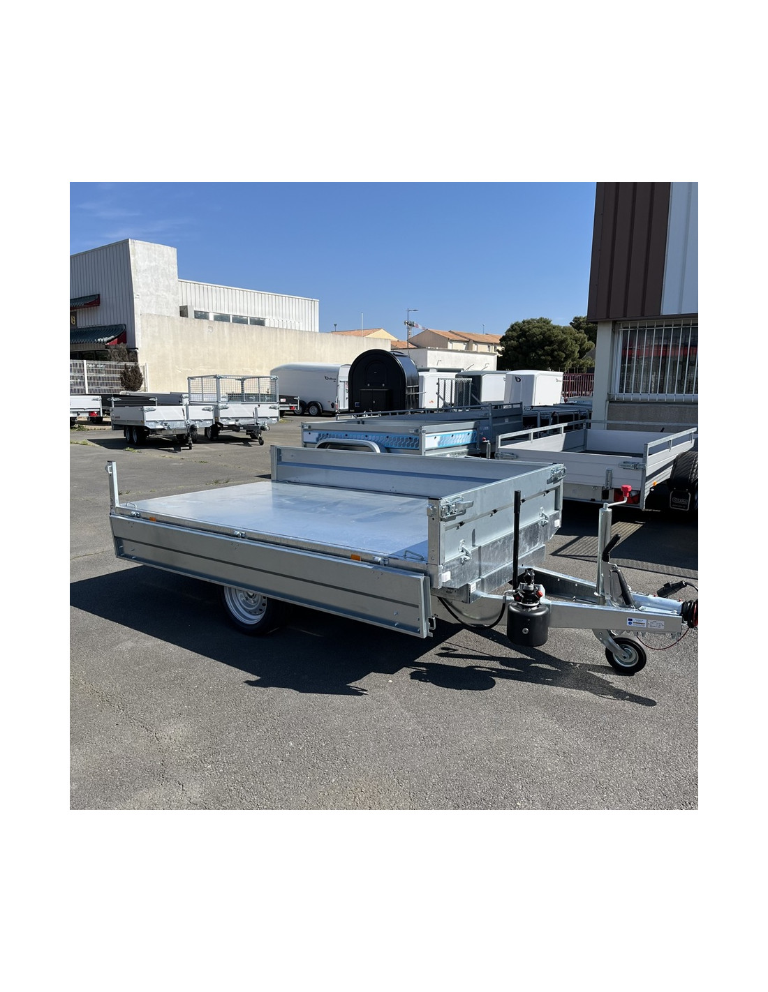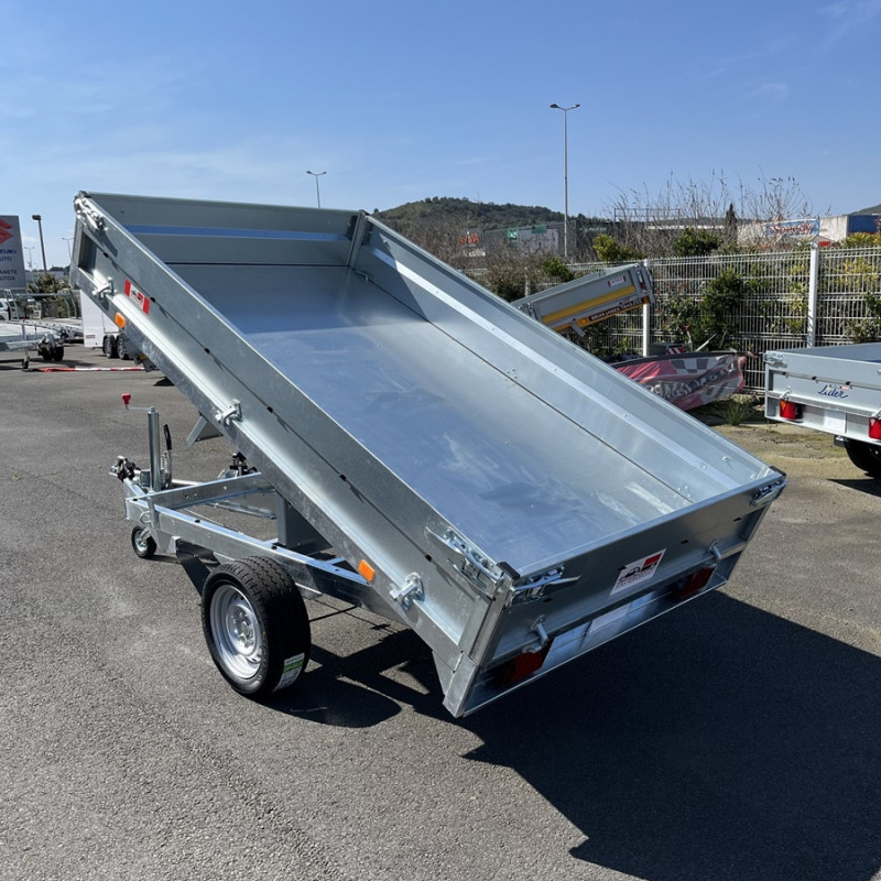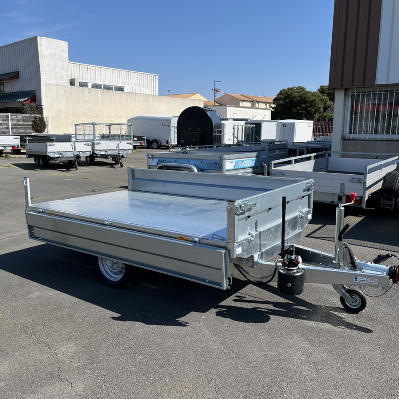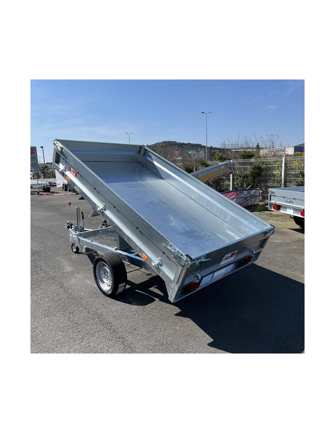 La benne Lider 42575, initialement conçue pour un PTC de 1350 kg, est ici proposée en version déclassée à 750 kg, idéale pour les utilisateurs recherchant une remorque benne sans permis remorque spécifique (selon réglementation en vigueur).