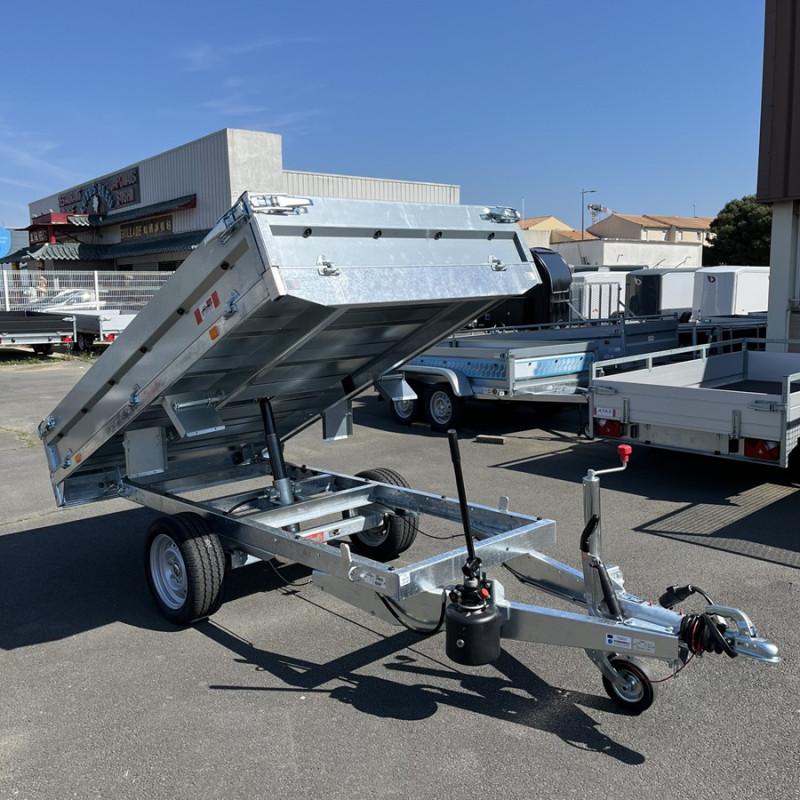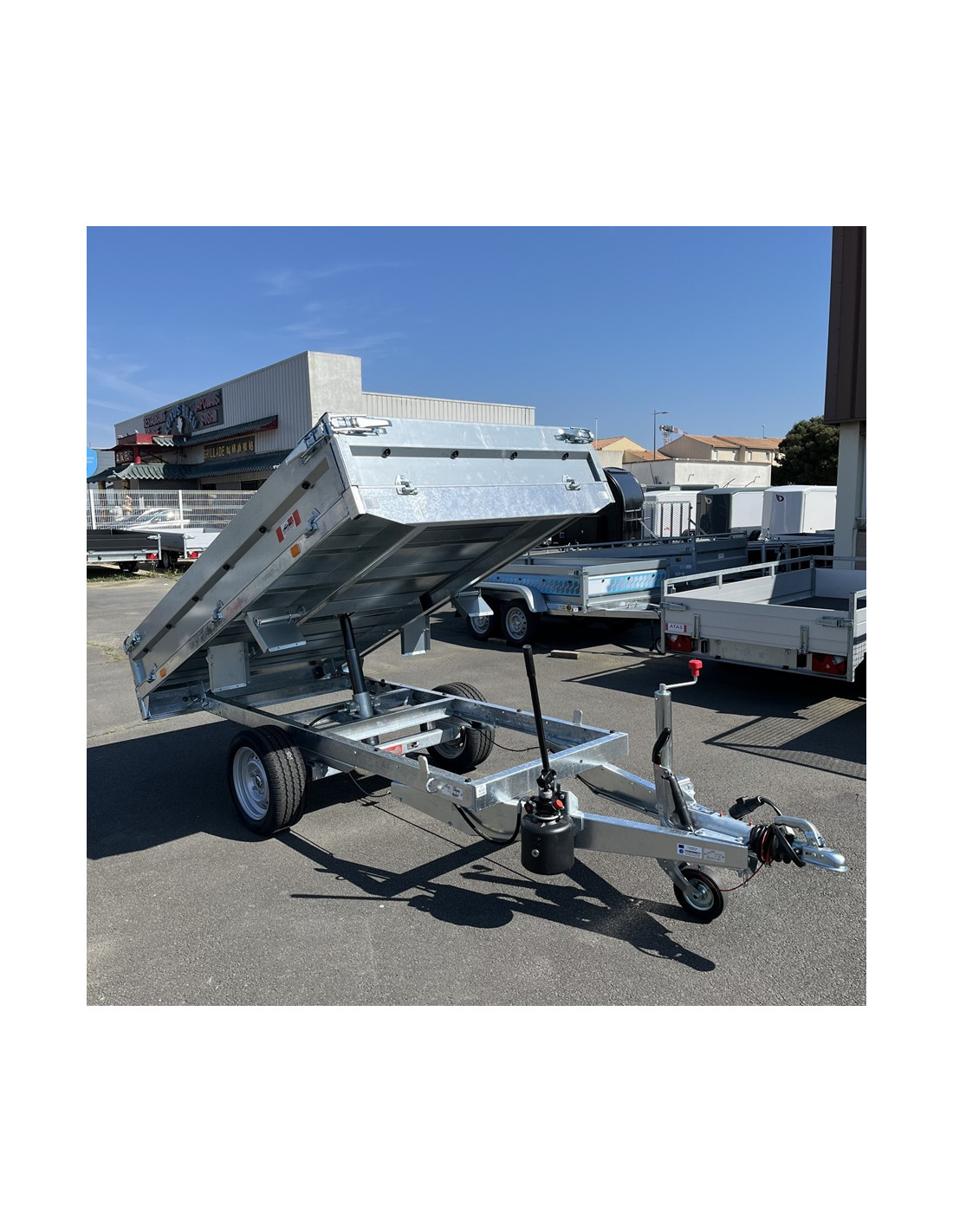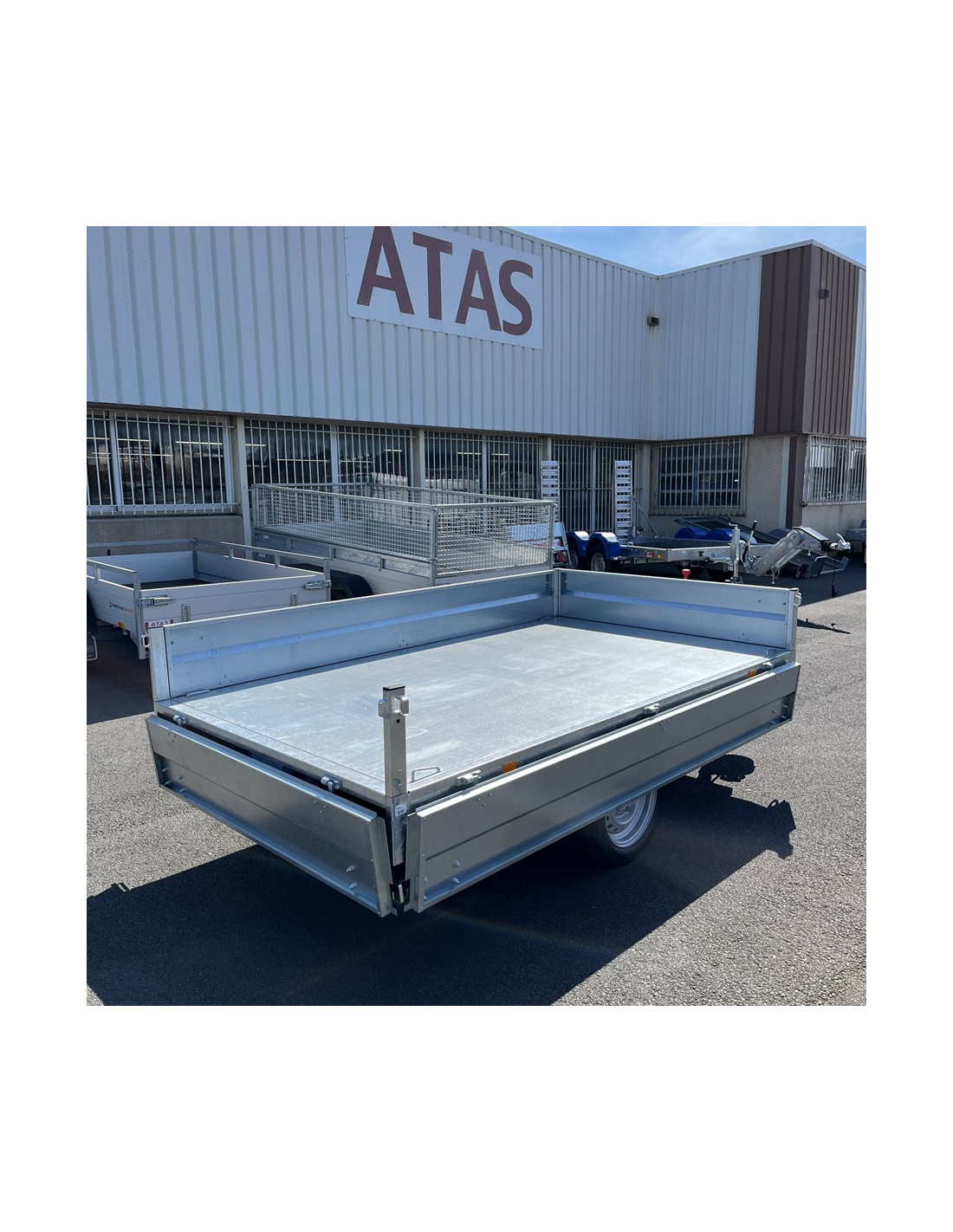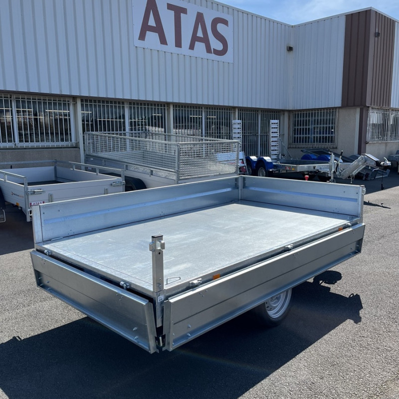 La benne Lider 42575, initialement conçue pour un PTC de 1350 kg, est ici proposée en version déclassée à 750 kg, idéale pour les utilisateurs recherchant une remorque benne sans permis remorque spécifique (selon réglementation en vigueur).