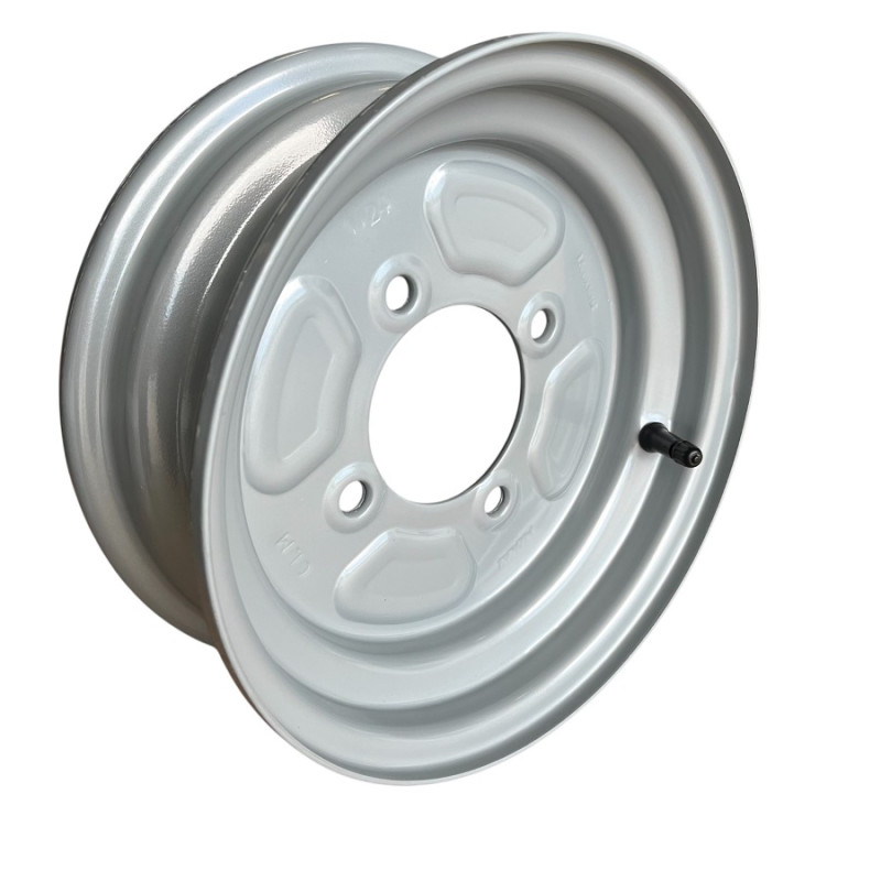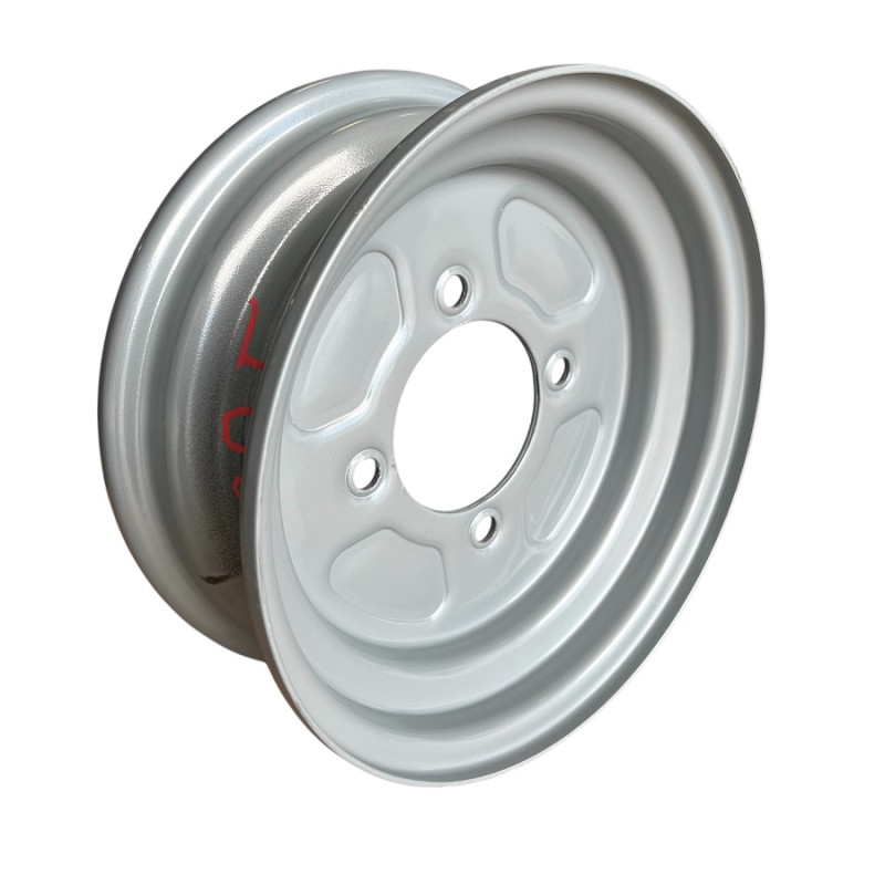 La jante remorque 10 pouces 350×10 à 4 trous avec perçage 115×4 est conçue pour équiper efficacement les remorques et équipements utilitaires nécessitant un entraxe spécifique de 115 mm. Elle est parfaitement compatible avec les pneus 450×10, garantissant un montage fiable et sécurisé.