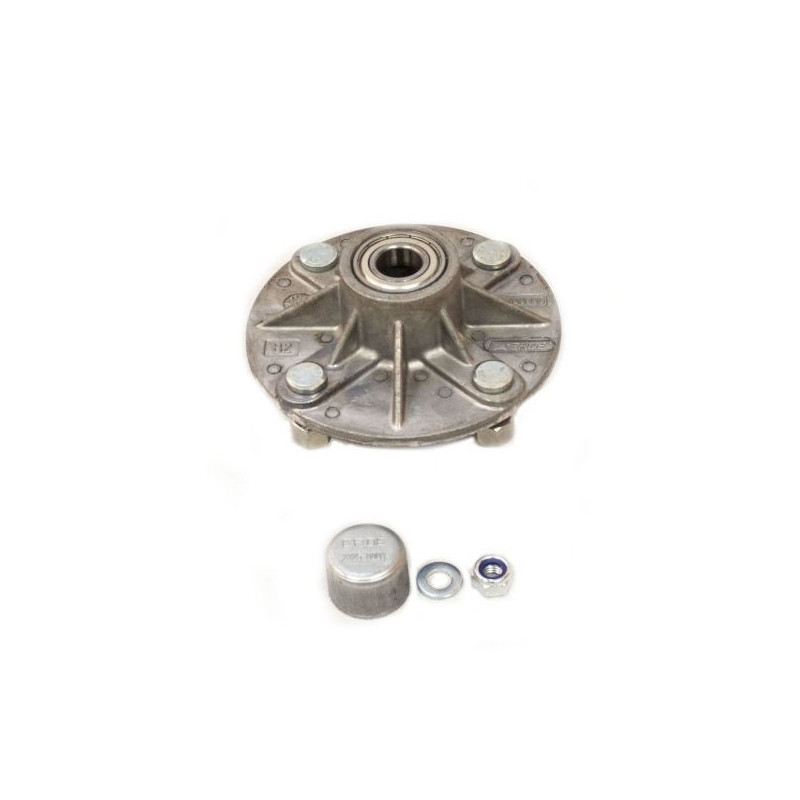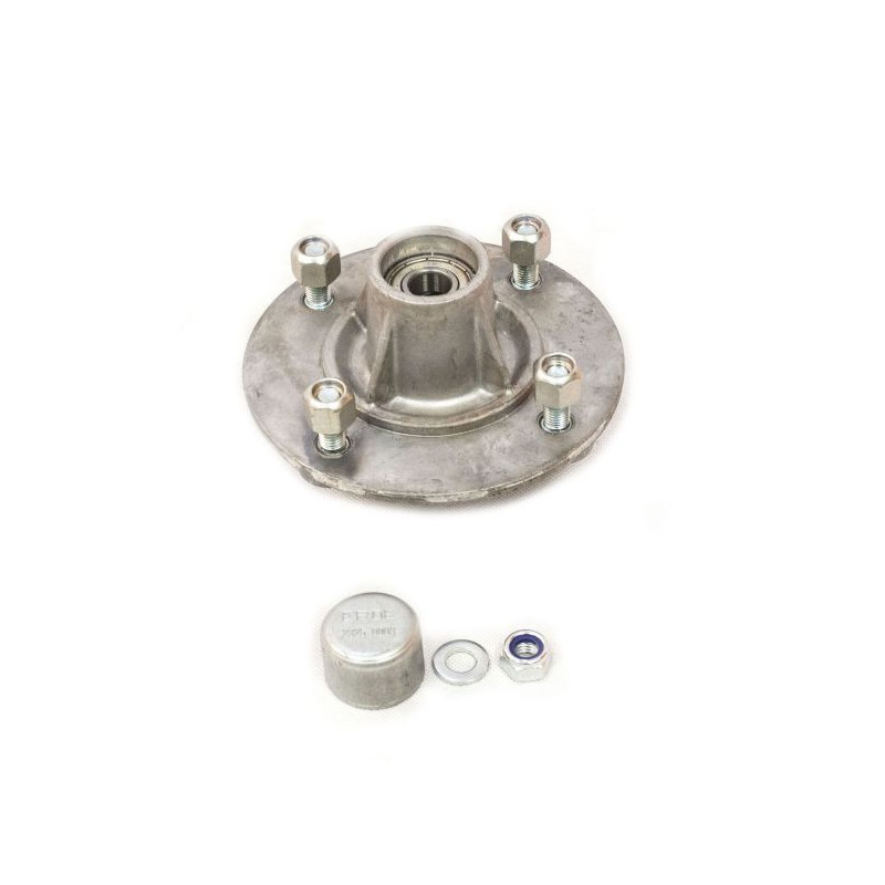ERDE Moyeu pour remorque ERDE 100-137 et remorque porte moto PM011-PM021Ce moyeu est livré complet avec roulements, chapeau de moyeu, goujons, écrous et écrous de serrage.Caractéristiques :- Dimensions moyeu: 130 x 90 mm - Perçage : 4 trous x 115 mm - Roulement extérieur 6202 - Roulement intérieur 6004- Cabochon diamètre 35mm- Livré avec axe de roues et cabochon de moyeu - Poids : 0,890 kg