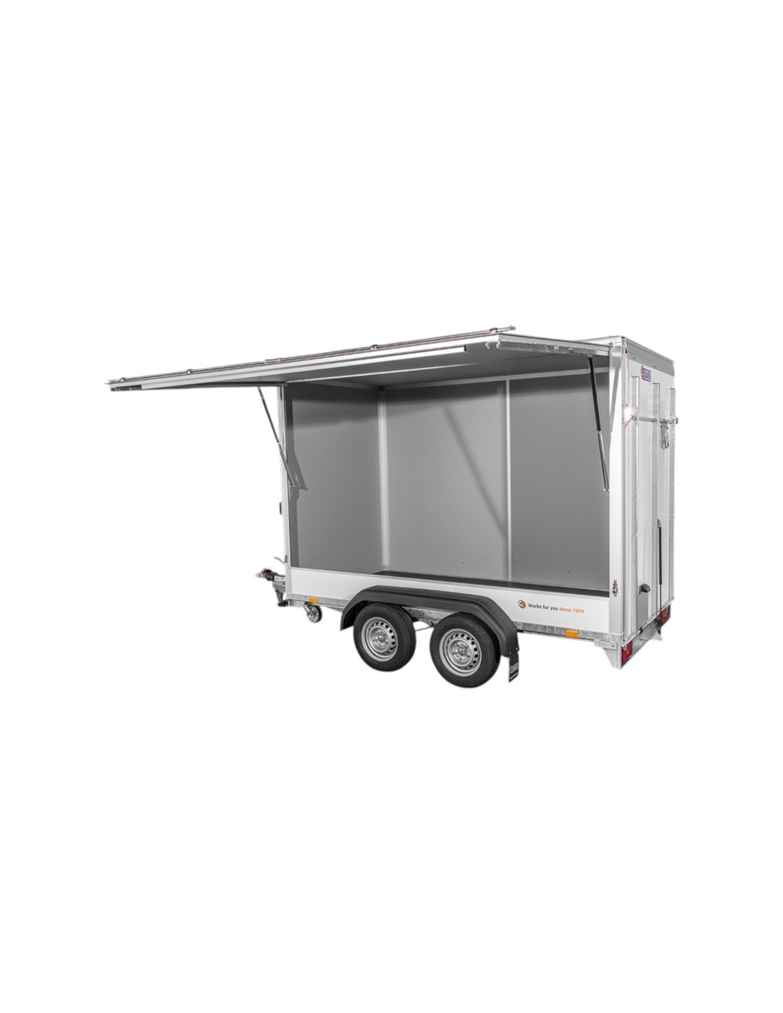 Le volet latéral SARIS est un hayon latéral ouvrant de bas en haut, installé en usine uniquement. Il remplace une partie du panneau latéral et s’ouvre grâce à deux vérins à gaz, ce qui assure une manipulation simple et sécurisée.