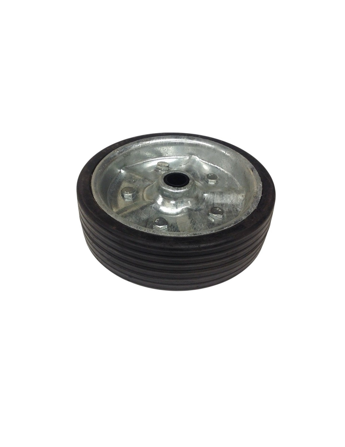 Elle est conçue en caoutchouc plein, ce qui évite les crevaisons, et sa jante en acier lui confère une excellente robustesse.