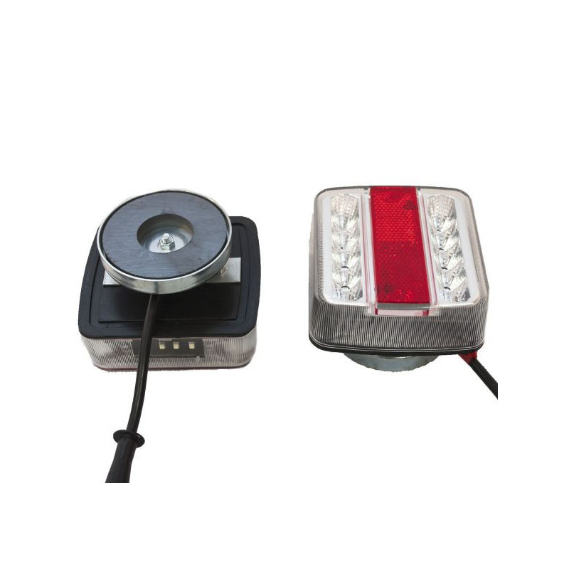 Kit de 2 feux à LED plots magnetiqueCaractéristiques :- Cable d'alimentation avec prise 7 plots.- Longueur de c ble : Alimentation 7.5 m / Entre feu 4 m - Feux étanches aux projections d'eau (non immergeable)