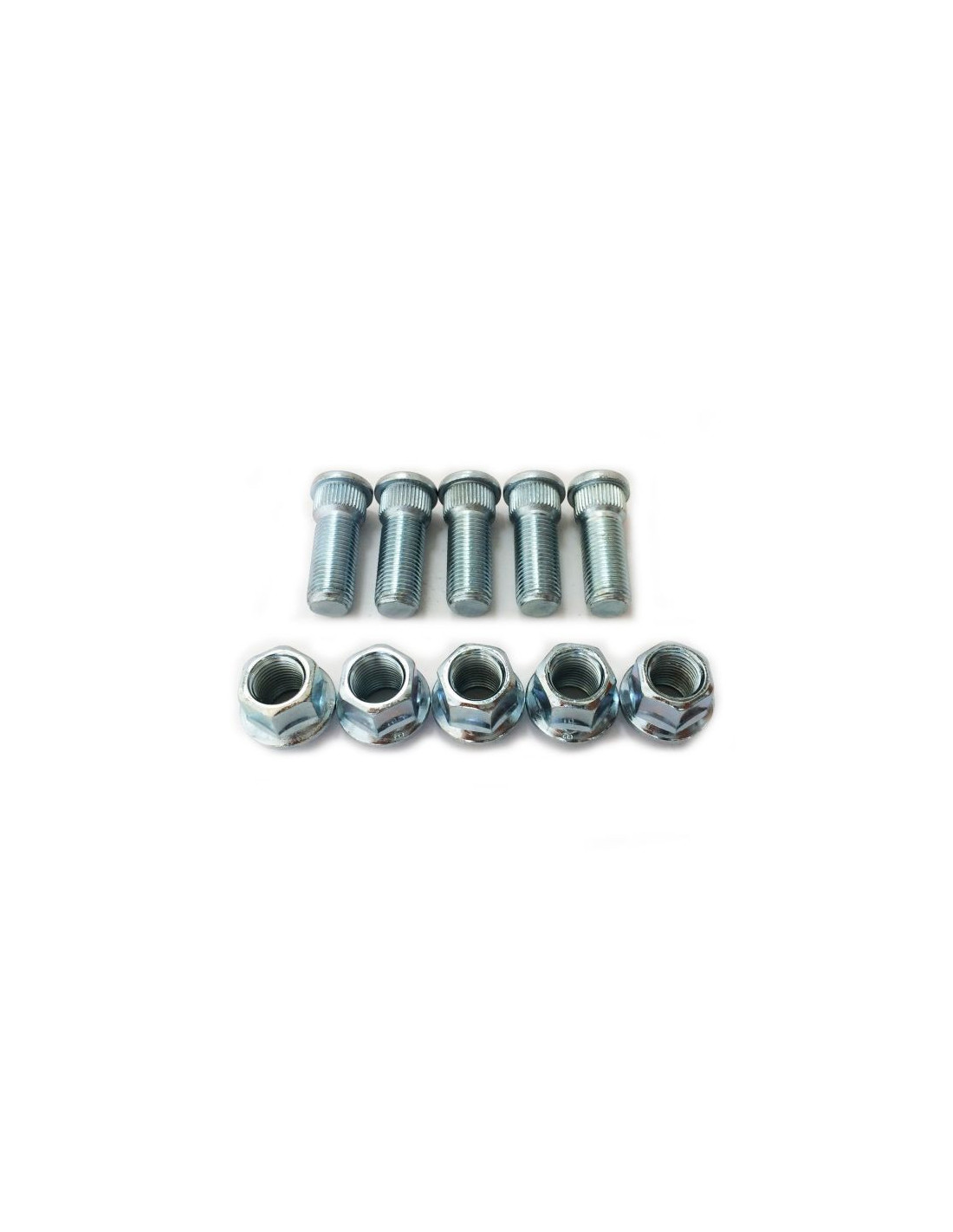 RTN Kit de 5 axes de roues + écrous M14Caractéristiques :- 5 écrous sphériques avec embaseCaractéristiques des axes :- Longueur tête : 5 mm / Diamètre : 20 mm- Longueur canelure : 10 mm / Diamètre : 17 mm- Longueur filetage : 30 mm / Diamètre : 14 mm- Longueur totale : 45 mm- Pas de 1,5 mmCaractéristiques des écrous :- Nécessite une clef de 19- Hauteur : 20 mm- Ecrou avaec embase sphériquePoids de l'ensemble : 0,444 kg