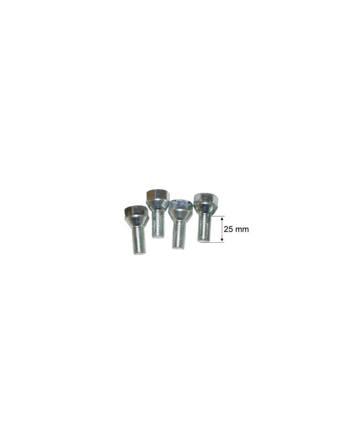 Kit de 4 vis de roue coniques M12 x 1,5Caractéristiques :- Filetage : M12 - Longueur 25 mm- Clé de 19